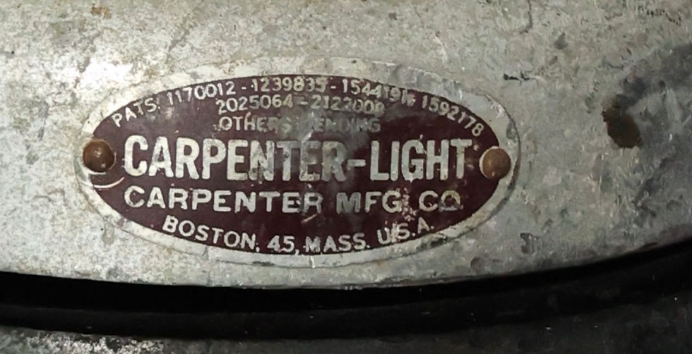 This object is identified as a Carpenter-Light industrial signal lamp, manufactured by Carpenter Mfg. Co. of Boston, Massachusetts, and dating approximately to circa 1950–1970. The dating is supported by both the manufacturer’s history and the physical characteristics of the object.