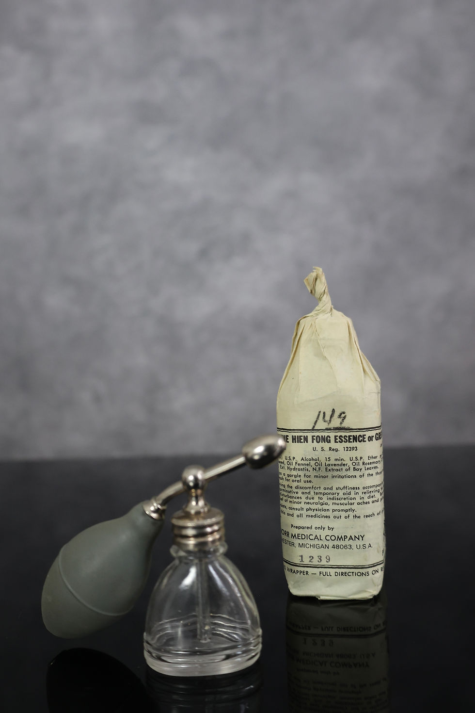 This example of Hien Fong Essence (“Green Drops”) is notable for surviving in an unopened state, with the original liquid contents still present inside the bottle. The twisted and sealed paper wrapper at the neck remains intact, indicating the bottle was never opened for use or was sealed immediately after purchase and stored undisturbed.